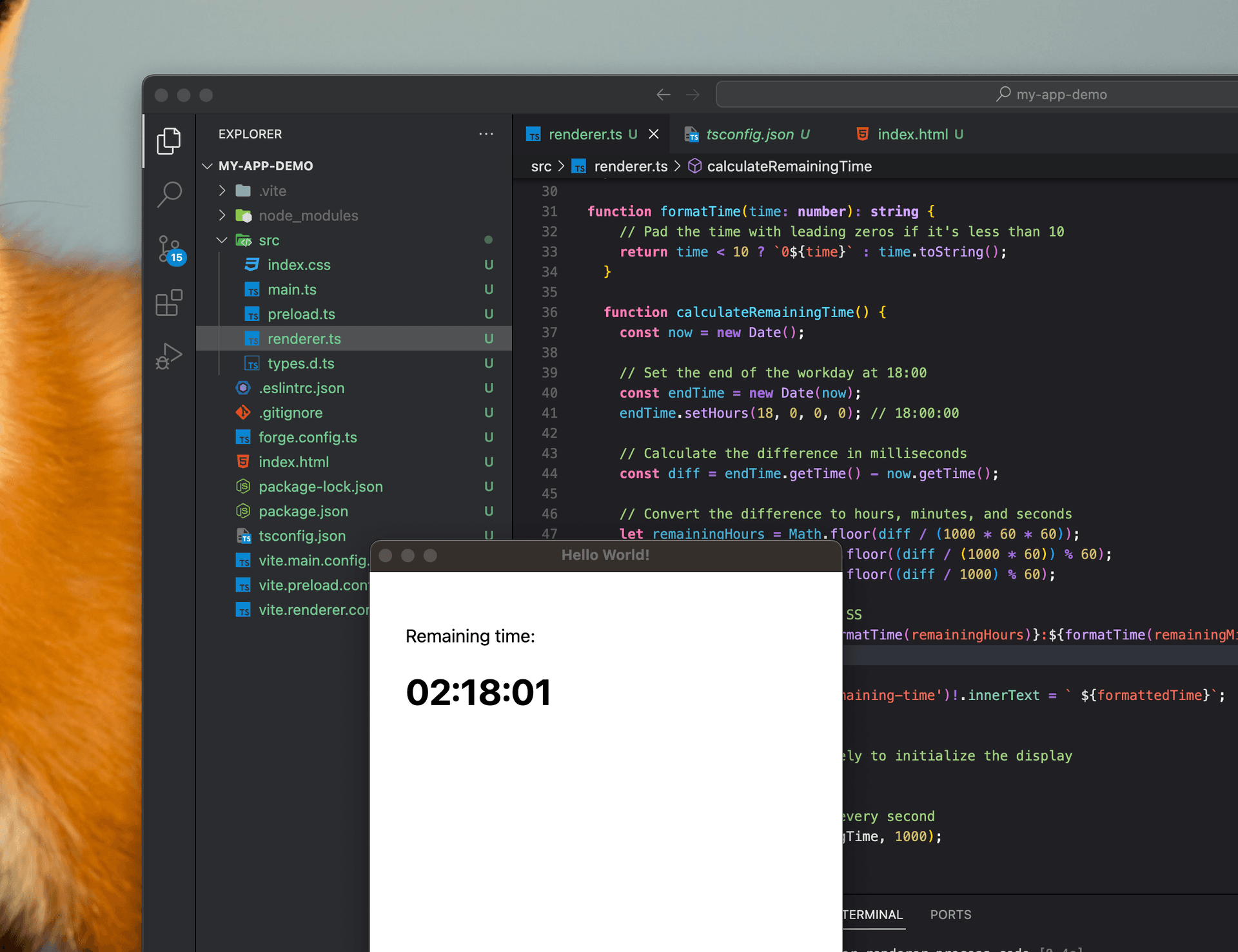 When you paste the code generated by ChatGPT into the code editor, you can run the corresponding effect. The following image shows the Remaining Time generated by ChatGPT, with 02:18:01 as the calculated result