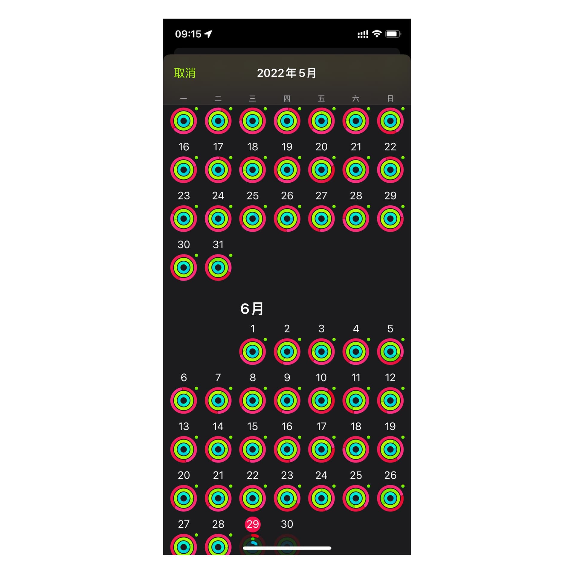于是就进入了非常疯狂的状态(一般同学可真的不一定要这样,医生建议保持一周运动 150 分钟即可),基本是一周七天,一天两次运动,Apple Watch 的圆环从 3 月开始就全部都是跑满的状态,在吃的方面我倒也不是很控制,我很讨厌吃轻食,所以在减肥的第一天就没有把轻食放在我的食品 list 里(这里非常感谢我的小伙伴幕阑,在我锻炼的第二周给我发了一个文档“原来吃沙县也可以减肥”,让我们对吃的东西有了全新的认知,不再惧怕乱吃带来的风险)。