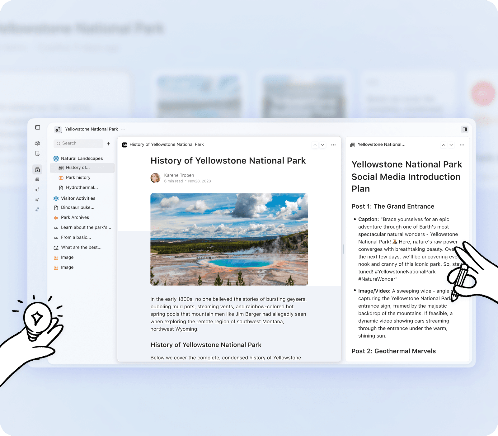因此,现在正是推出这类工具的最佳时机,正如中国一句老话所说,可谓是“天时地利人和”俱备。 “天时”在于,我们正处于技术高速发展的黄金时代,每天都有令人耳目一新的技术涌现。 “地利”则得益于大语言模型的蓬勃发展,使我们能够在此基础上构建更贴合创作者需求的工具。 而“人和”,恰恰源于我们过去十年在知识管理工具领域的深耕,让我们能够了解行业趋势和创作者的痛点。